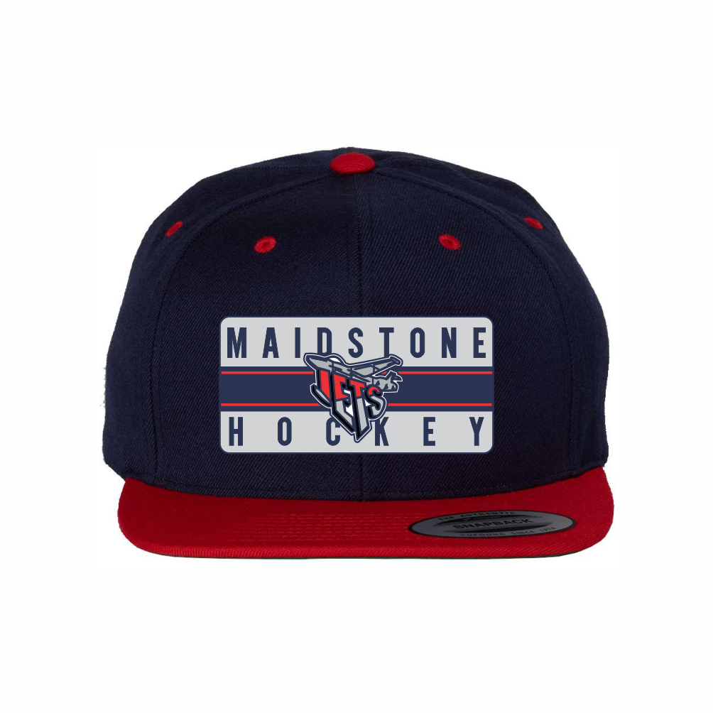 YP Classics – Premium Flat Bill Snapback Cap – JET -NAVY/ RED